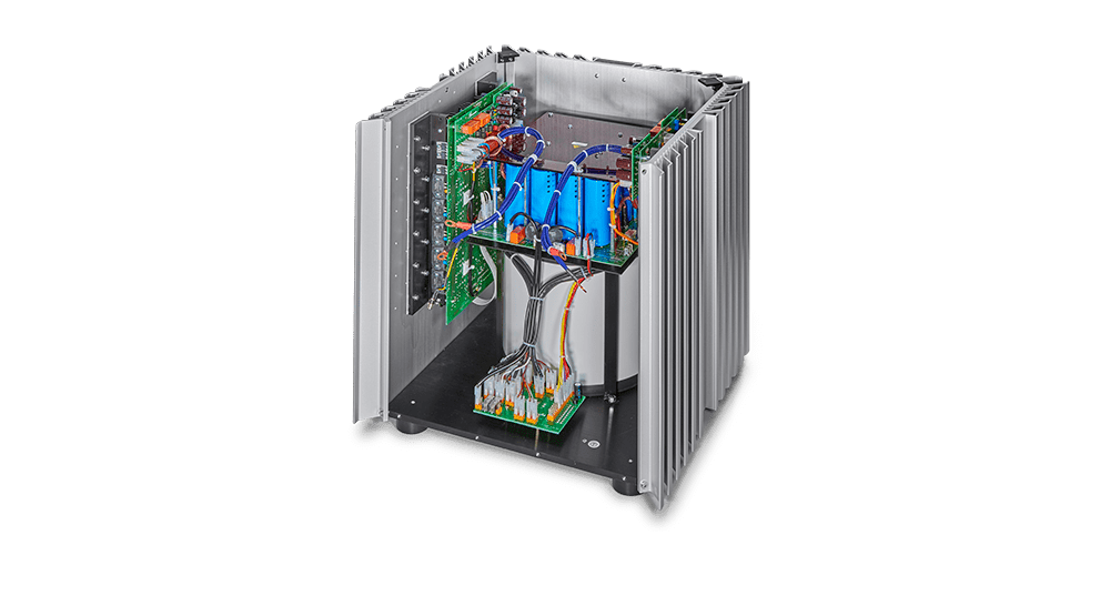 To complete a 909 power amplifier requires a whole range of assembly and quality control stages in the Berlin factory. From hand-assembled circuit boards, where each soldered connection is carefully checked, and top-quality transformers to computer-aided measuring stations it takes about 100 hours to produce a 909. This is not counting the seven-day burn-in period and the final quality control and listening tests under real-world conditions. All this is necessary to ensure that the customer receives an audio component that is outstanding in every respect.